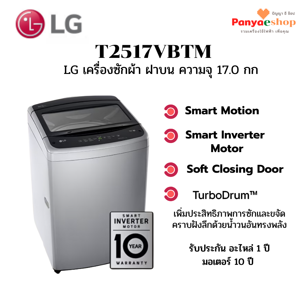 LG เครื่องซักผ้าฝาบน รุ่น T2517VBTM ความจุ 17.0 กก อินเวอร์เตอร์