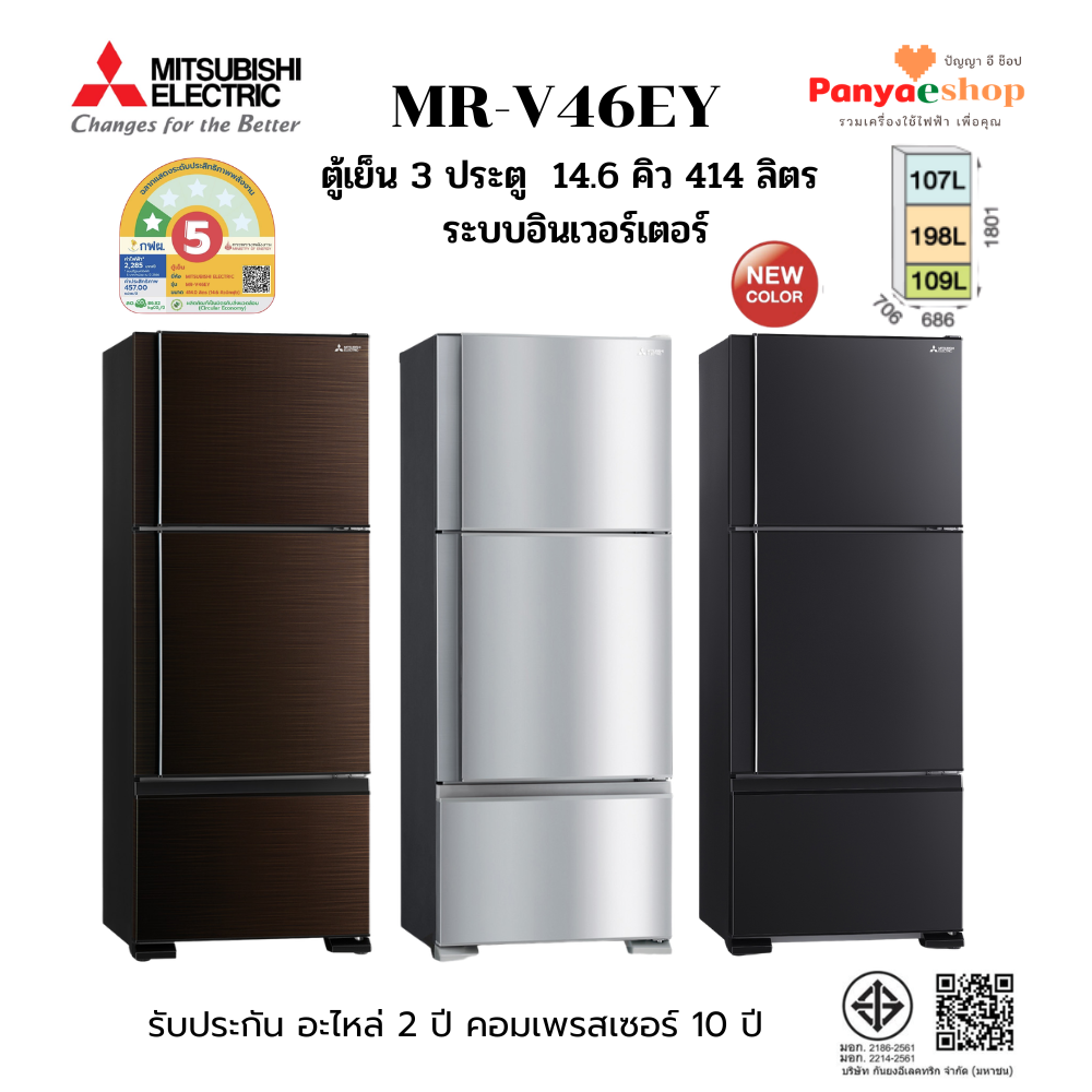 MITSUBISHI ตู้เย็น 3 ประตู รุ่น MR-V46EY จุ 14.6 คิว Top Freezer อินเวอร์เตอร์