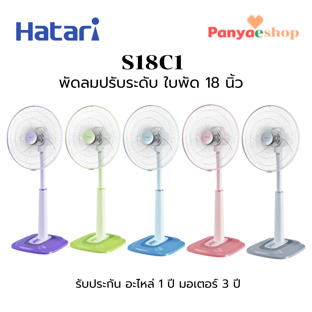 HATARI พัดลมกึ่งตั้งพื้นตั้งโต๊ะ รุ่น S18C1 ใบพัด 18 นิ้ว ปรับระดับความสูงได้ 6 ระดับ 95.7 - 114.6 ซม.