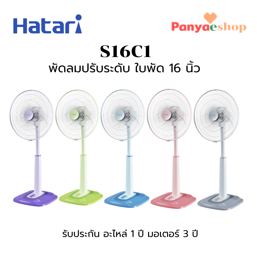 HATARI พัดลมกึ่งตั้งพื้นตั้งโต๊ะ รุ่น S16C1 ใบพัด 16 นิ้ว ปรับระดับความสูงได้ 6 ระดับ ตั้งแต่ 84.1 - 105.0 ซม